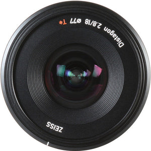 As an autofocus lens, linear motors are used to deliver quick, quiet, and smooth focusing performance to suit both stills and video applications. however, can also be used with APS-C models where it will provide a 27mm equivalent focal length. Bright f/2.8 maximum aperture suits working in available-light conditions and is also ideal for astrophotography use. Distagon optical concept affords high sharpness, well-corrected image quality from edge to edge, and very low field curvature. Two aspherical elements, five elements made from anomalous partial dispersion glass, and a pair of aspherical elements also made from low dispersion glass are featured. ZEISS T* anti-reflective coating has been applied to each lens surface to help minimize reflections and provide greater contrast and color fidelity. The floating elements system helps to maintain consistent image quality throughout the entire focusing range, from 9.8" to infinity. The integrated OLED display on the top of the lens shows the working focus distance as well as the depth of field range for quickly recognizing the parameters of focus in use, even when working in low-light conditions. For manual focusing, a rubberized ring offers greater tactile control for precise placement of focus.